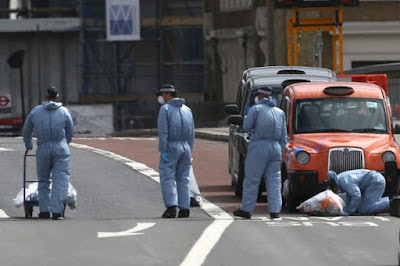 Pasukan forensik melakukan pemeriksaan di lokasi serangan pengganas di London Bridge pada Ahad. Foto Reuters